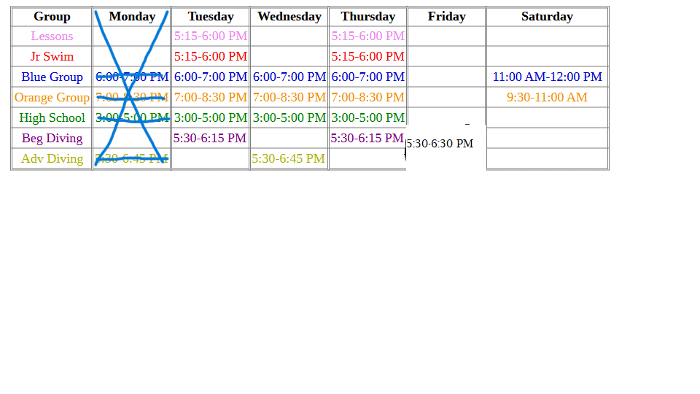 If you have any qustions around the schedule reach out to your boys, girls or Dive rep ([email protected] / [email protected] / [email protected]).